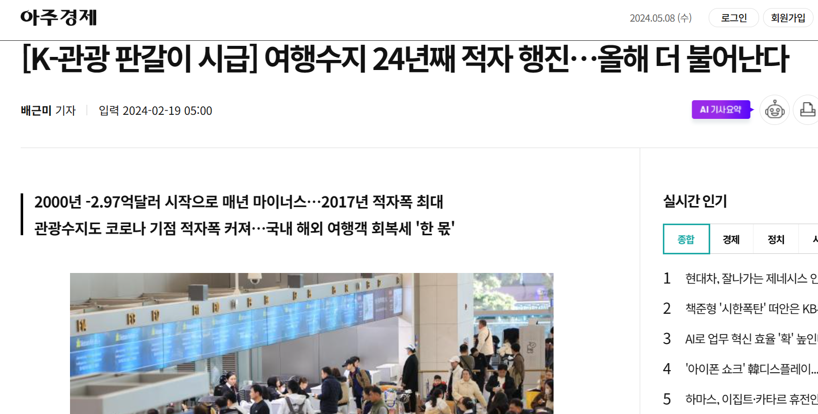 한국은 현재, 관광 적자가 매우 심각하기 때문에,