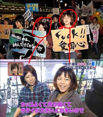 多分、日本好きな在日ではないかと思う嫌韓デモをやってるのは男、それを白い目で見ているのは女❗️