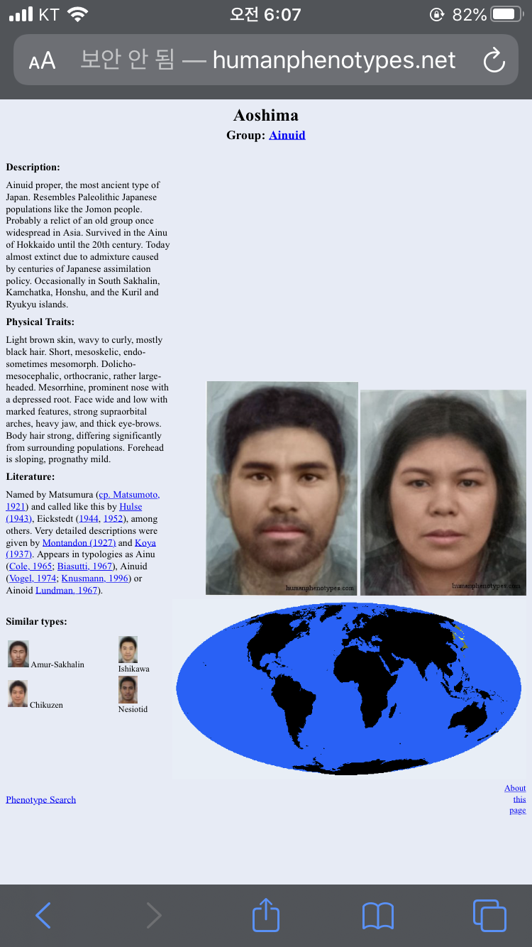 >>69 한국에도 혼혈이 아니지만에 팔 ,가슴 ,배 다리 ,등 에도 짙은 체모를 가지고 눈이 큰사람들이 있다. 그런 사람들은 조선반도에 야요이인이 출현하기 전에 반도에 살던 원주민 들의 후손이거나 일본죠몽계통 사람들의 후손인것 같다. 주로 남부지방에 보이는 형질이다.