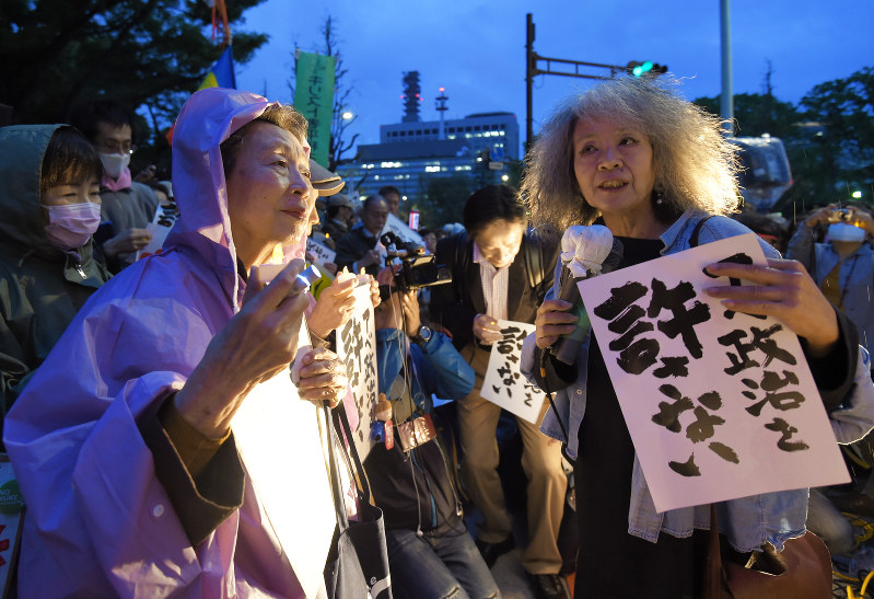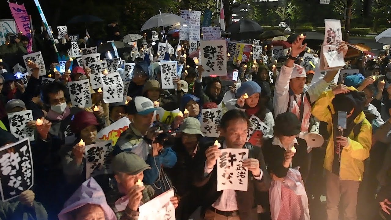 安倍政権退陣を叫ぶ日本人たちが「真実は沈没しない」を歌った。