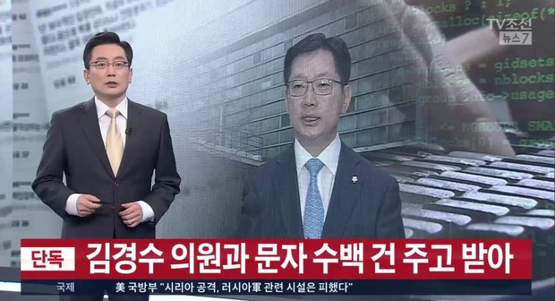 김 의원이 인터넷 댓글을 조작한 의혹을 받고 있는 민주당원과 수백차례 비밀문자를 주고받았다고 TV조선이 보도한 직후다. TV조선은 댓글조작으로 긴급체포된 민주당원 김모씨가 보안 메신저 텔레그램을 통해 김경수 의원과 수백건의 메시지를 주고받은 사실을 확인했다고 보도했다. 김씨는 네이버 등에서 본명을 드러내지 않고 ‘드루킹’이라는 필명으로 유명세를 탄 인물이다.