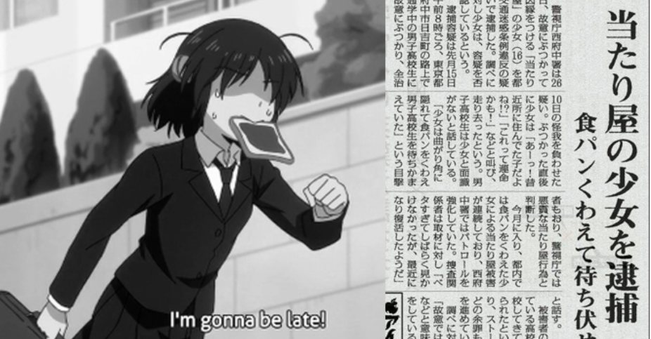 パンをくわえた女の子と曲がり角でぶつかったことは二度や三度ではありませんもう少し早ければ、イベントがあったのに・・・残念だね