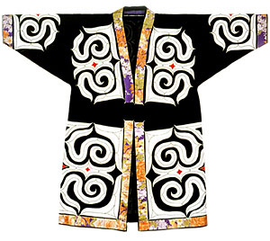 模様は古代中国大陸の青銅や饕餮などのデザインの流れにも見える、ソックリなのもある、少しインカのようにも見える。ロシアのシベリア少数民族村の紹介ではアイヌと同様の衣装を出していた、−50度も普通の環境で100歳健康長寿も普通、海藻ではなくバクテリアと乳製品の影響と書いてあった。