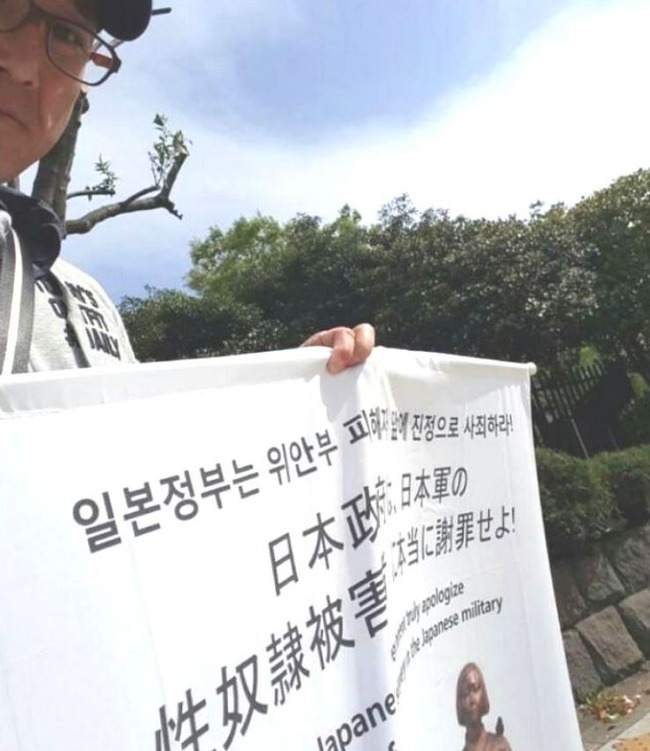 「日本で1人デモ中の韓国人」が「日本政府は慰安婦被害者に謝罪せよ」・・・