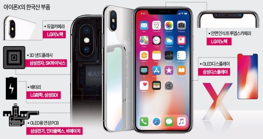 아이폰X에 들어가는 부품 대부분이 삼성과 LG의 부품이다.