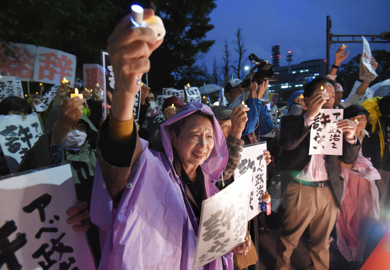 【東京に登場したろうそく・車壁、韓国に似ていく安倍首相退陣デモ】