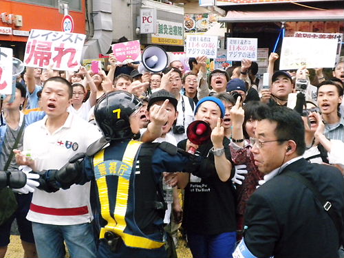 左寄り?の方と仲間たちがやってきて汚い言葉で罵られた。