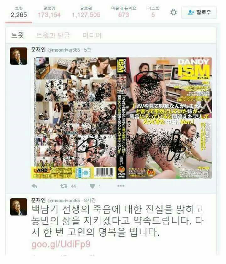 새벽 늦은 시간에 문재인의 트위터에 포르노(근친) 이미지 업데이트
