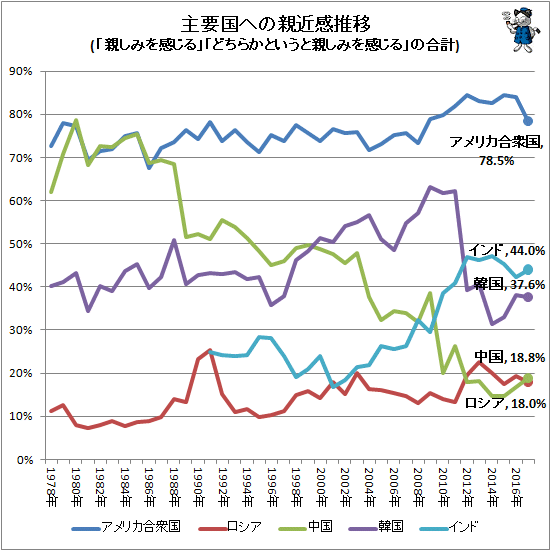 日本人は韓国よりもインド・アメリカのほうが好きみたい>>1