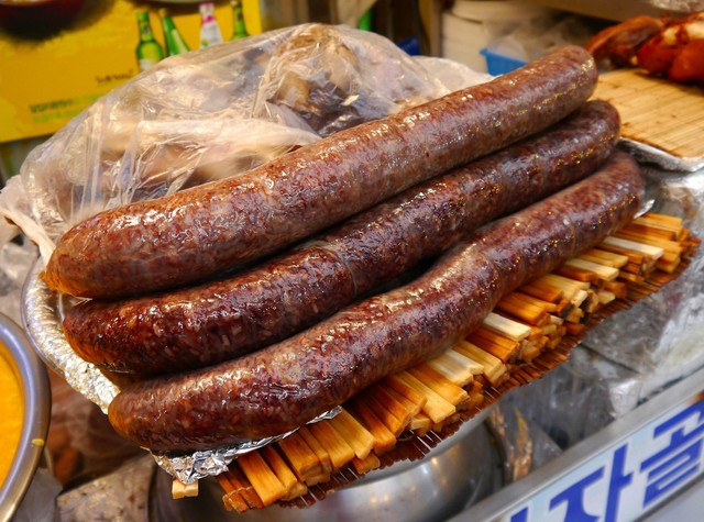 『ホンタク』や『ホンオフェ』の方が味?的に相応しいと思われますが、ビジュアル重視で『1本ものタイプ』と『トグロ巻きタイプ』の2種類の『スンデ』を選んでみました。(^ω^) サイコー,デショッ? ww