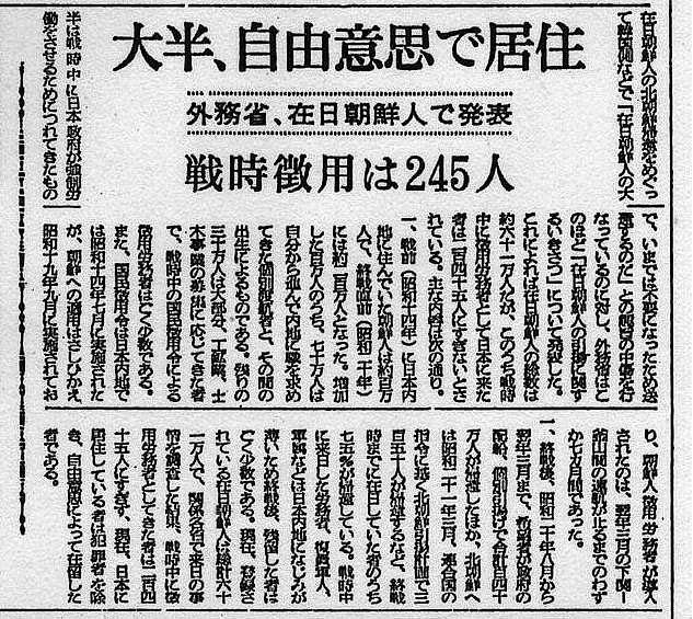 「在日朝鮮人の徴用者は245人」