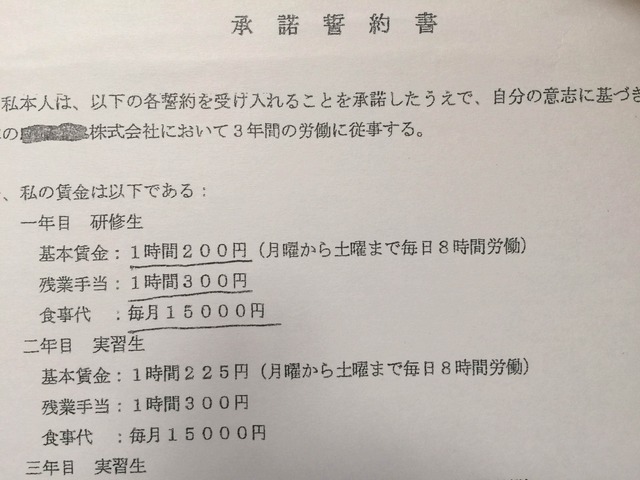 技能実習生も最低賃金が適用され、労働基準法の適用を受けます。 不要契約は無効となるので、このような契約書にサインされた場合は、労働基準監督署に報告する必要があり、救済申し立てができますよ。