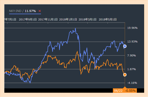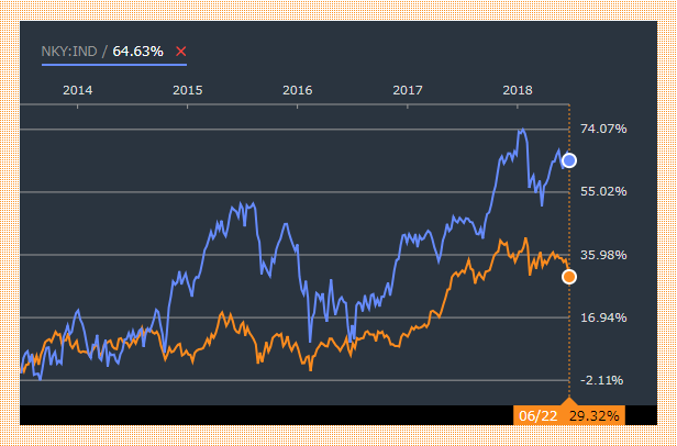 日経225 VS KOSPI 5年