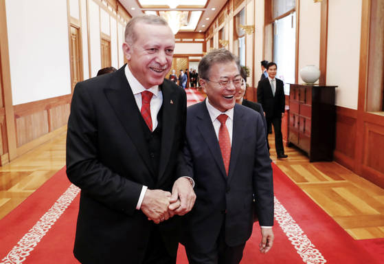 레제프 타이이프 에르도안 터키 대통령이 1박 2일 일정으로 한국을 국빈 방문, 문재인 대통령과 정상회담을 했다. 2일 오전 문 대통령과 에르도안 대통령은 소규모회담에 이어 확대회담을 갖고 '한-터키 공동언론발표문'을 확정했다.