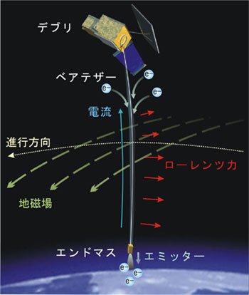 H2B打ち上げ成功するといいなー導電性テザー(Electrodynamic Tether, EDT)と呼ばれる、電気を通すひも状の網。