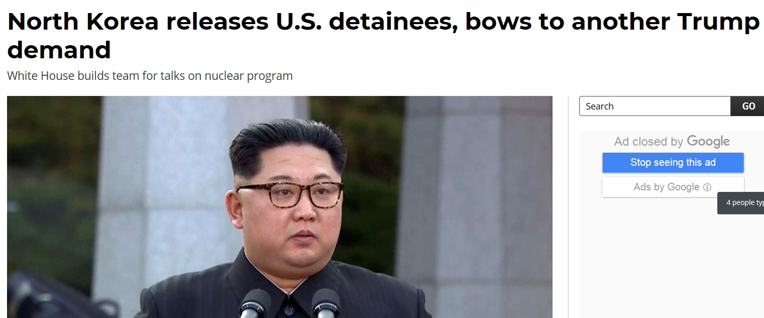 트럼프의 요청에 따라 억류자를 모두 석방한 김정은