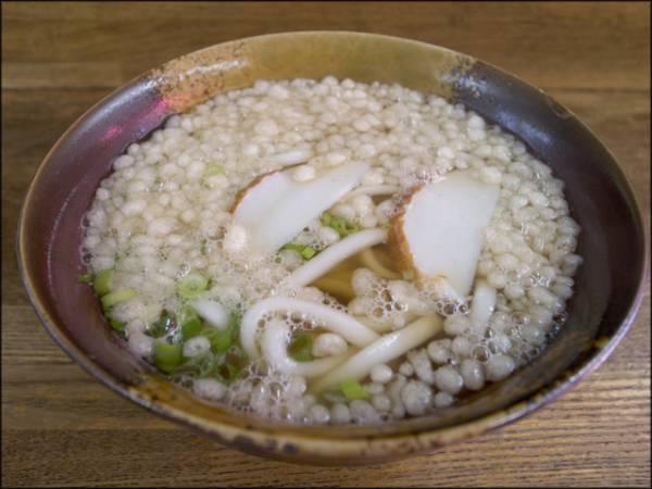 独特なのは京都のたぬき。だしにかたくり粉でとろみを付け、ショウガを利かせたあんかけうどん・そばに、刻んだ油揚げを載せる。京都は他にも、卵を溶きいれた「けいらん」、具だくさんの「のっぺい」など、うどん、そばのあんかけメニューが豊富だ。>>884