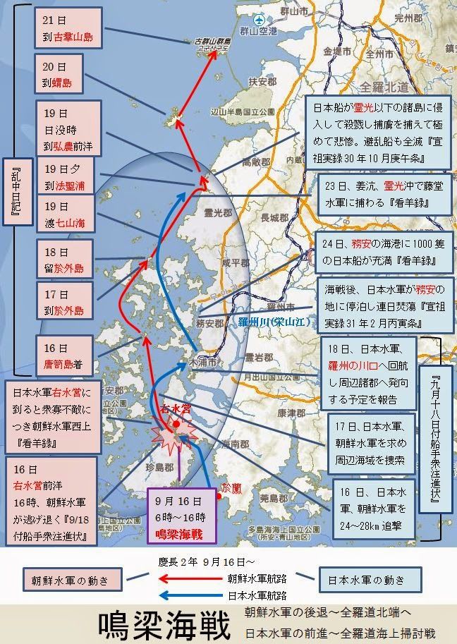 일본 육군이 稷山까지 진격했었는데 일본수군은 최소한 錦江 하구까지는 북상했었어야 했다.