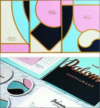 ▲大統領府が公開した文在寅(ムン・ジェイン)大統領就任1周年記念品のデザイン=写真上=と、英国のデザイン会社「Here Design」が手がけたレストランのメニューやコースター=同下=。写真=大統領府・Here Design朝鮮人は何でもジェネリック