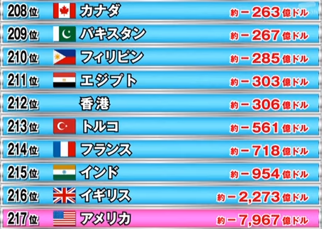 貿易収支のランキングが下でも日本は問題ないぞ。