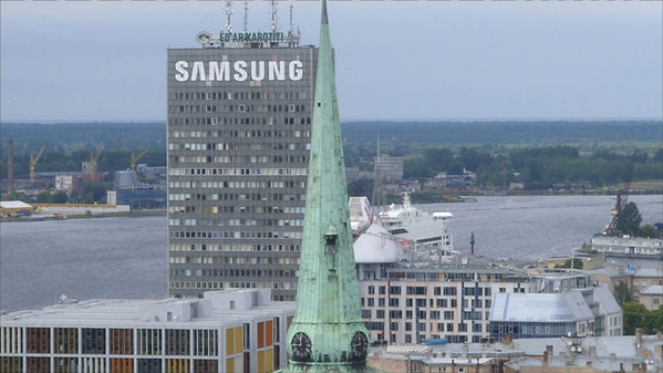 そこから遠くリガ港の方を見ると、最も高い建物のてっぺんに『SAMSUNG』という文字が鮮明に見える。そして反対方向のリガ川に沿って視線を移すと、川のほとりに『LG』の広告看板が大きく目に入ってくる。