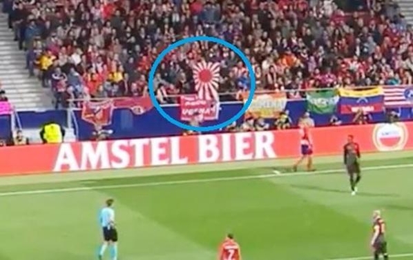去る4日、スペイン・マドリードワンダメトロポリタンタノで開かれたヨーロッパリーグ準決勝アトレティコ(AT)マドリード(スペイン)とアーセナル(イングランド)の試合では、ATマドリードのファンが旭日器使用応援する場面がTV画面に捕捉された。このシーンは、国内ネチズンの情報提供に確認された。