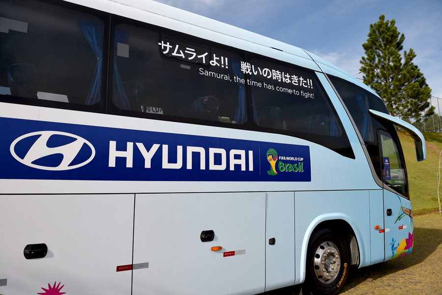 ※画像写真・2014年ブラジルW杯でチームバスに描かれた日本のスローガン【写真:Getty Images】- 2