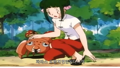 도망치는 파라스. 과연 파라스는 그저 겁이 많아서 battle을 피했던 것일까?2. 약방집 딸이 파라스를 진화시키려는 목적