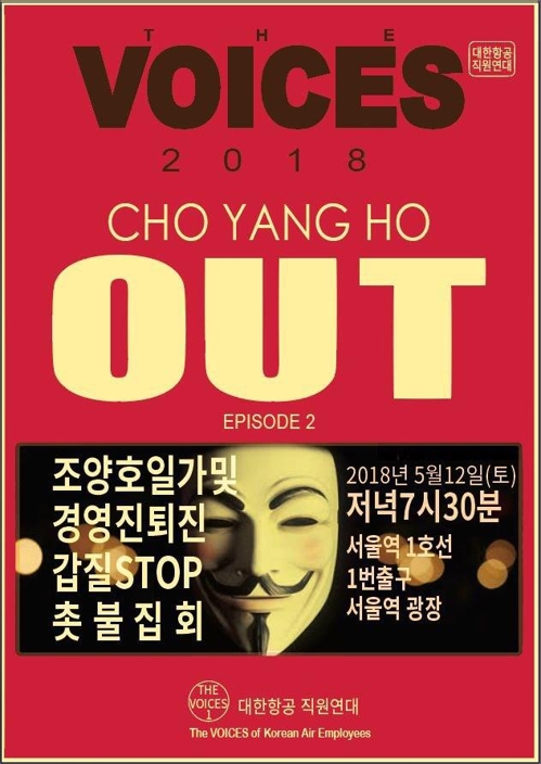 10日の航空前・現職職員など1千人が参加しているカカオトーク匿名チャットルームには、「チョ・ヤンホ会長一家との経営陣の退陣・ガプジルSTOPキャンドル集会:EPISODE 2」のスケジュールが告知された。
