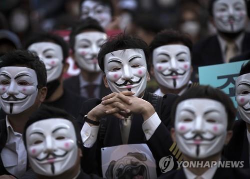 主催者側の最初の集会の時のように、大韓航空側の参加者探し出すが懸念されるため、「ガイ・フォークス「仮面や帽子・マスク・サングラスを用意してもらう発表しました。
