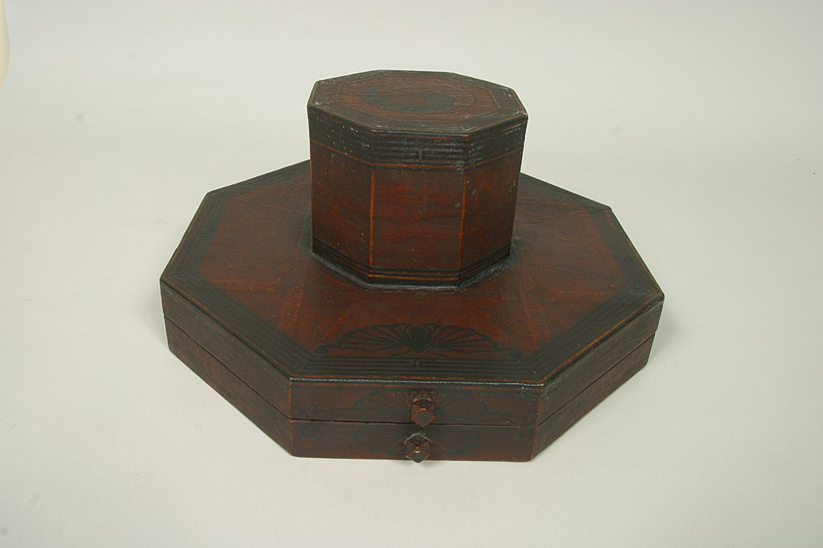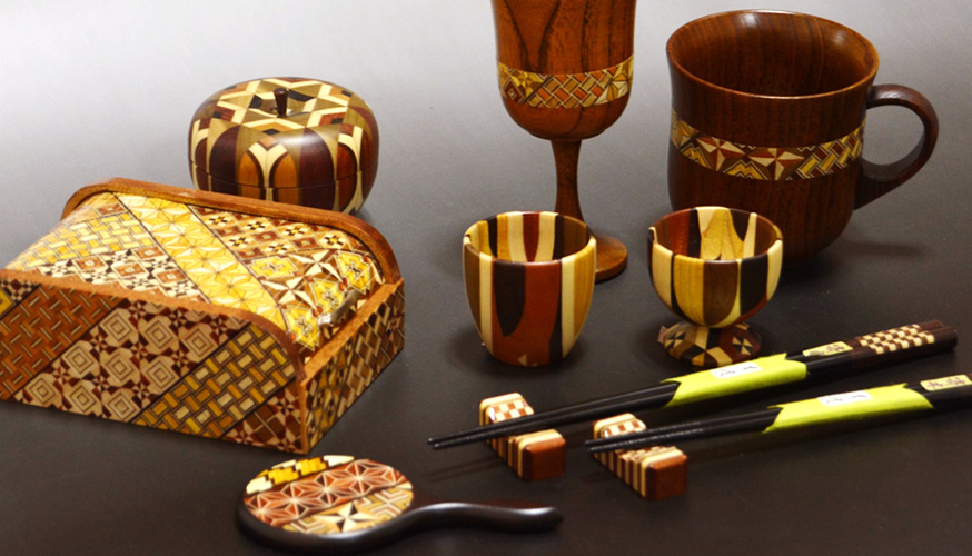 1200年以上続くという箱根・小田原の木工の歴史のなかで、この技法は比較的新しく、江戸時代末期に箱根で創作されたといわれています。日本屈指の木材の種類の豊富さを誇る箱根山系より、多様な木を用いて独特の幾何学模様が生み出されてきました。
