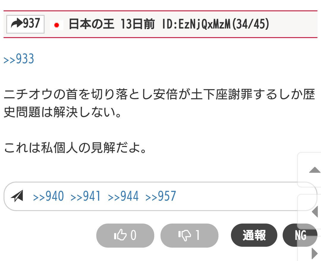 さらっと嘘をつく韓国人特有の症状だな(笑「日本の王」は、NGにして無視するのがいいと思いますよ。(  ̄ω ̄)