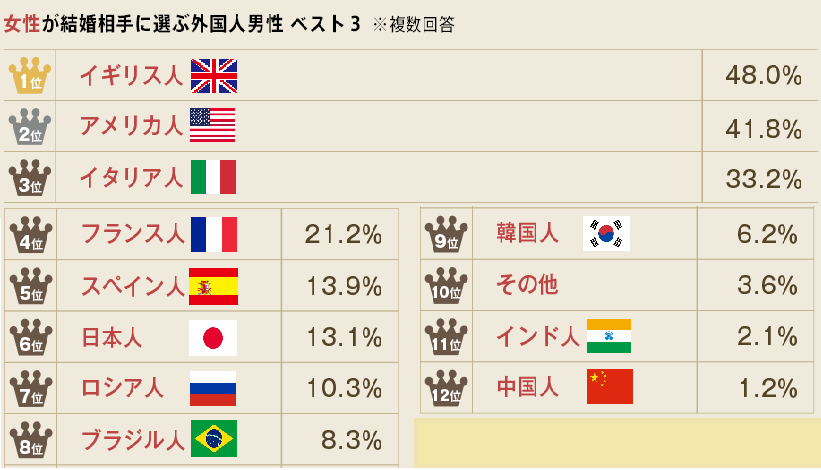いまどき女子が結婚したい外国人! 男性が1位に選んだのは…!!