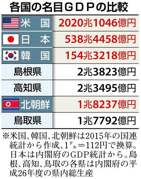 1韓国は水、北朝鮮は油2018/05/14(Mon) 13:00:58ID:EwMjUwMjA(1/1)NG報告日本でも1番人口が少ない鳥取県。そんな鳥取県と変わらない北朝鮮のGDP。統一したらGDPは日本を超えるとか笑えるんだけど200兆円かけて統一して韓国経済良くなると思う?>>4>>8>>18>>290