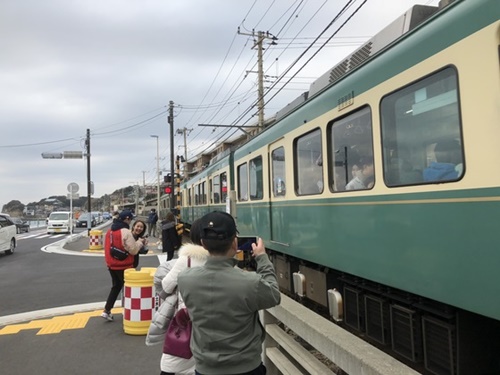 今年2月、中国人観光客が漫画『スラムダンク』に登場する鎌倉市の電車「江ノ電」を撮影している。死ねよ韓国人、