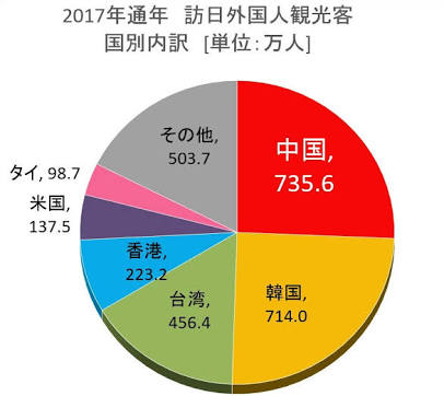 日本を訪れた外国人数は2017年2869万人。2011年622万人から5倍近く増えた。2012年末に再執権した安倍晋三首相が、観光振興をアベノミクスの看板事業に掲げて必死に取り組んだ結果だ。東京オリンピック(五輪)が開かれる2020年の誘致目標は4000万人だ。