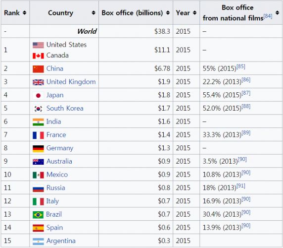 일본 영화시장은 세계 5위다