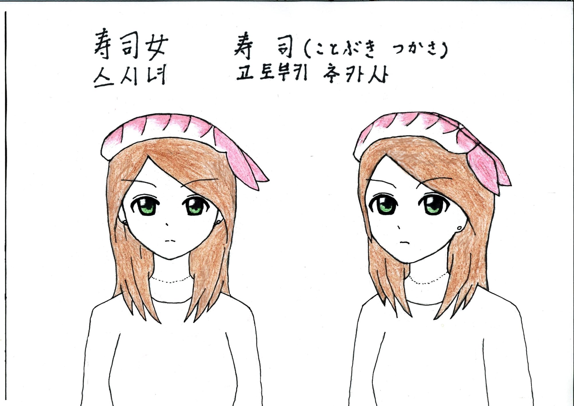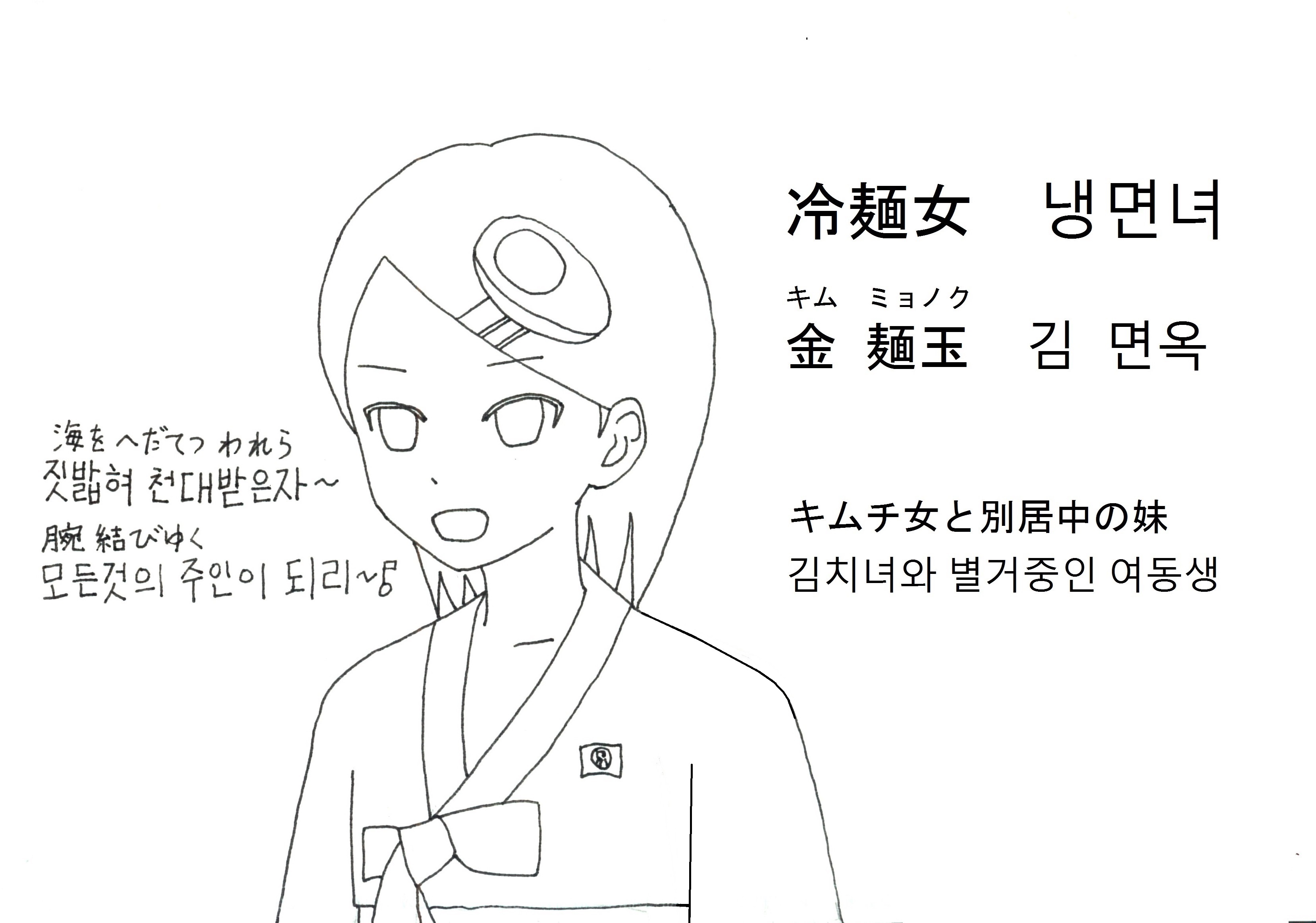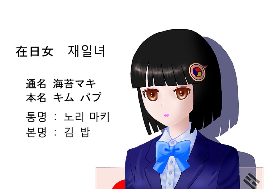 そこに上げた風刺画で、寿司女(스시녀)を萌え化したところ、非常に好評だったようです。萌え化寿司女を描いて下さった方や、萌え化キムチ女(김치녀)を描いて下さった方もおられました。全く感無量の極みです。