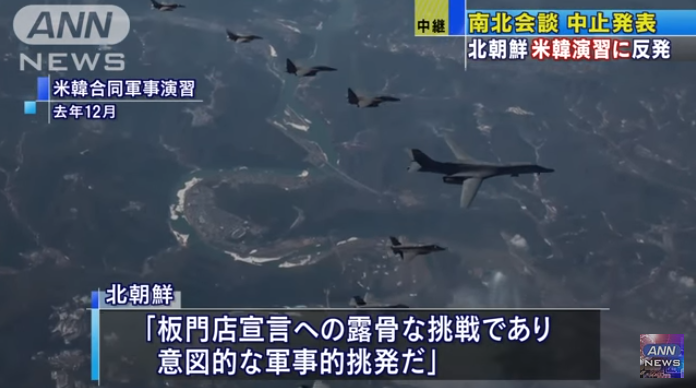 北朝鮮の朝鮮中央通信も16日、共同訓練を非難し、閣僚級会談を中止すると表明。米国に対しても「朝米首脳会談の運命について熟考すべきだ」と警告、6月12日に予定される米朝首脳会談の中止の可能性をちらつかせてけん制した。