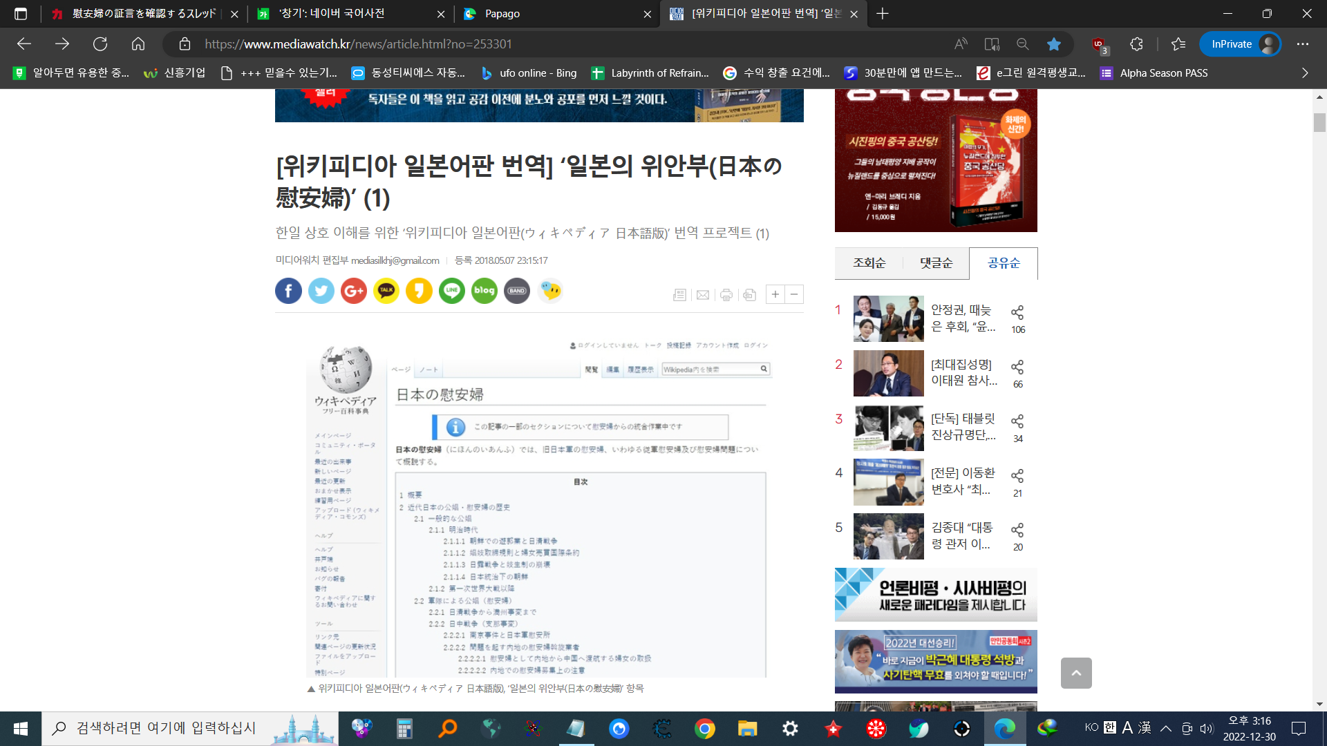 [위키피디아 일본어판 번역] ‘일본의 위안부(日本の慰安婦)’ (1)