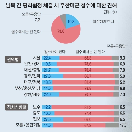 한국 국민 73%" 평화협정체결시에도 주한미군 주둔해야 한다. "