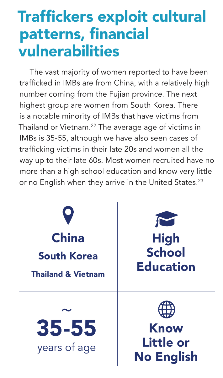 高卒で英語もまともに話せない韓国人女性に、儲け話があると騙してアメリカに連れてきて、借金を背負わせて渡航、パスポートを取り上げて逃げれなくさせて、売春を強要。バレそうになったら別の州に移動させ査察から逃れる