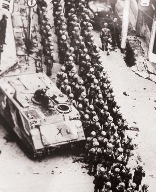 80年5月、装甲車を先頭に光州に進入した空輸部隊の行列=518記念財団//ハンギョレ新聞社全裸道の反乱