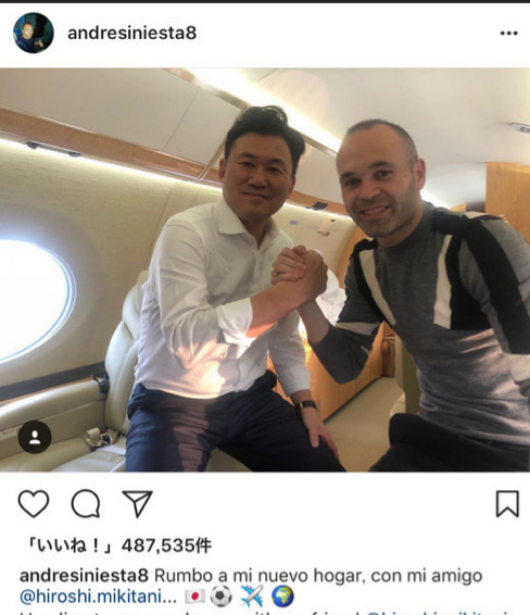 【神戸】イニエスタが来日へ…三木谷氏が2ショット写真「新しい友達連れて帰る」
