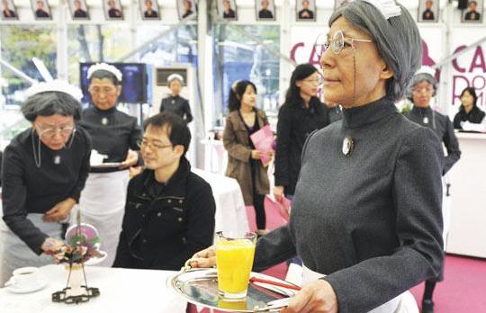 実際には若いメイドも混じっているようだが、老けて見えるメイクをしたみたい。