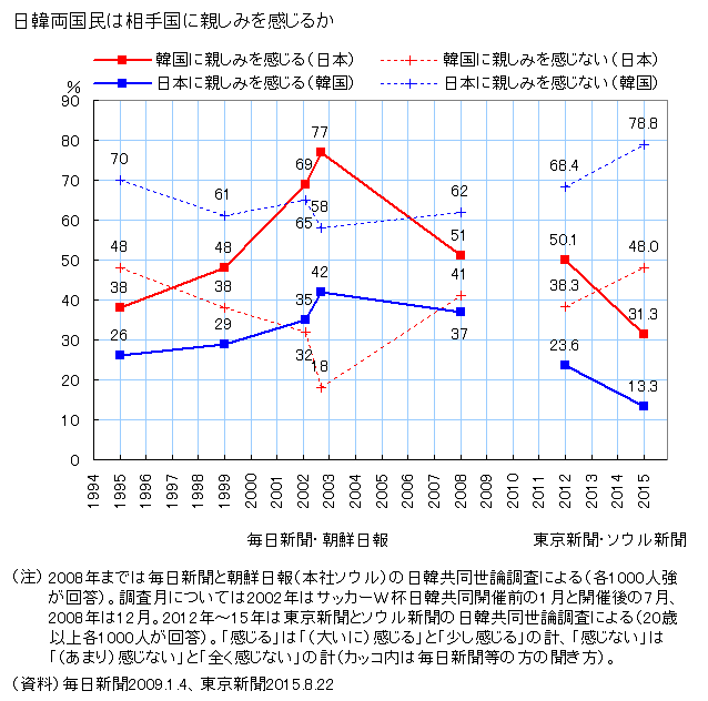 というか現在でも韓国が嫌いな日本人よりも、日本嫌いな韓国人の方が多いようだ