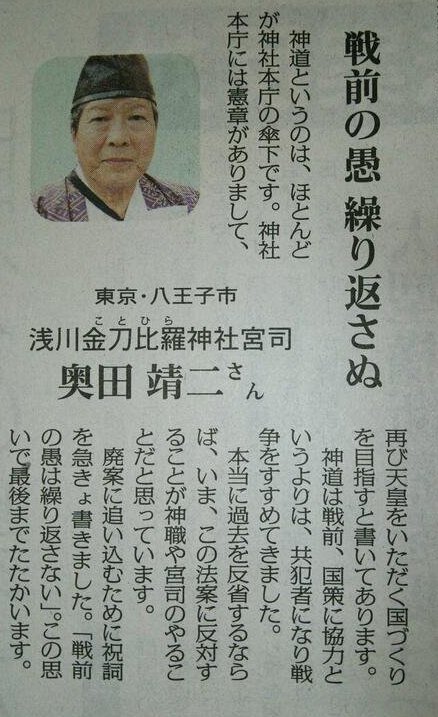 神道は戦前、国策に協力というよりは、共犯者になり戦争をすすめてきました。