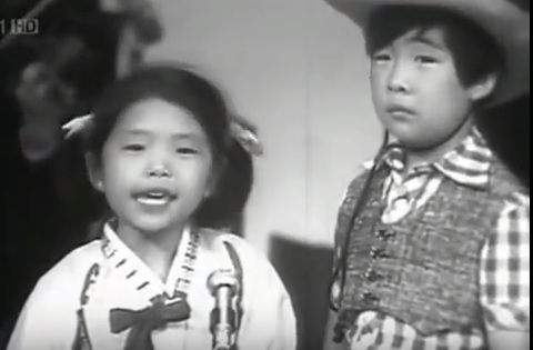 写真は、韓国版を歌う、パク・ヘリョンと日本の皆川おさむ。