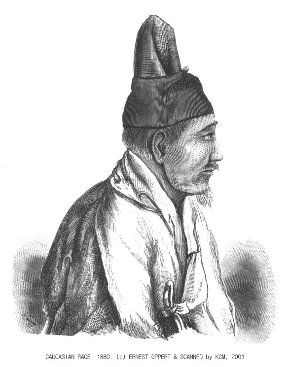 オランダの医師シーボルト(Fr.von Siebold)は朝鮮人の外観からはコーカソイド族とモンゴル族の特性が同時に見えるとし(『Nippon』、1840年代)、プロイセンの商人オッペルト(E.J.Oppert)も朝鮮人を2つの民族が混ざり合った人種だと考えた(『A Forbidden Land:Corea』、1880)。