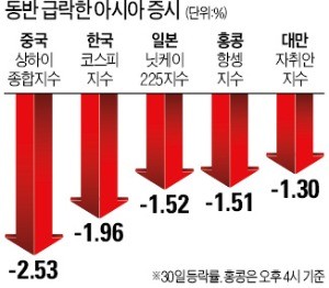 사진 30일 동반 하락한 중국/한국/일본/홍콩/대만
